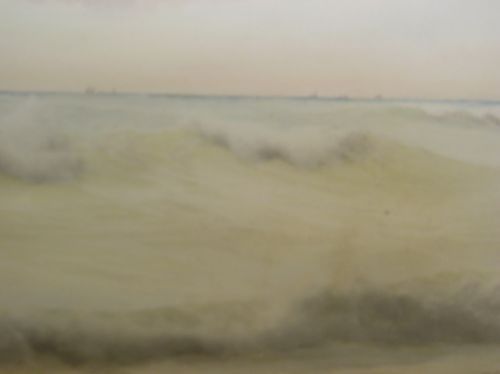 | Coastal scene with breakers and a distant view of sailing boats | |