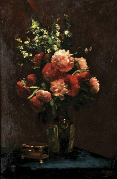 Natureza morta - Jarra com flores e guarda-jóias