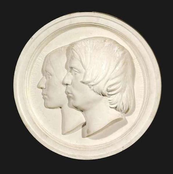 A portrait-relief-medallion depicting the married couple Clara Schumann, former Wieck, and Robert Schumann