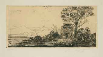 Une femme assise à son bureau peignant un paysage, dite 'L'Artiste'