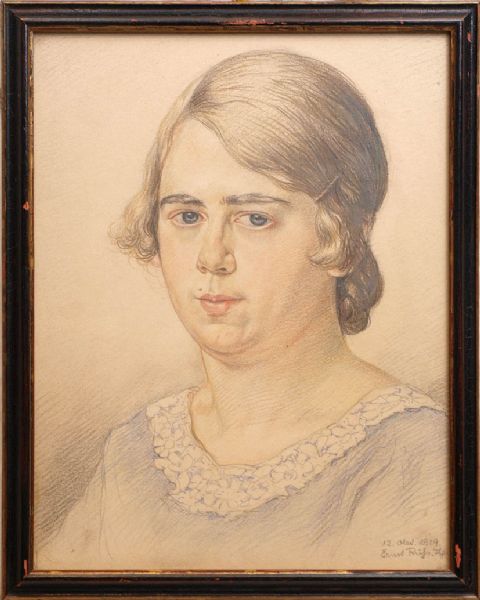 Drei Familienportraits, Brustbilder von Vater, Mutter und Tochter aus den Jahren 1929-31