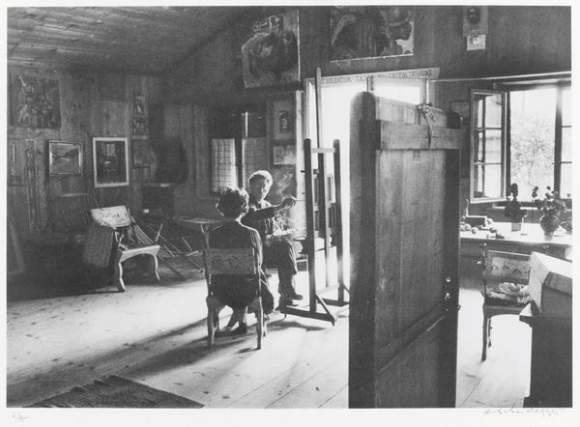 Alberto dans son atelier peignant un sujet féminin, Stampa 1964