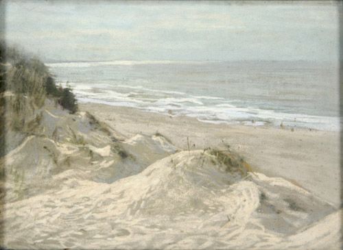 | Strand bei Norderney, Blick über die Dünen auf die weite ruhige See | |