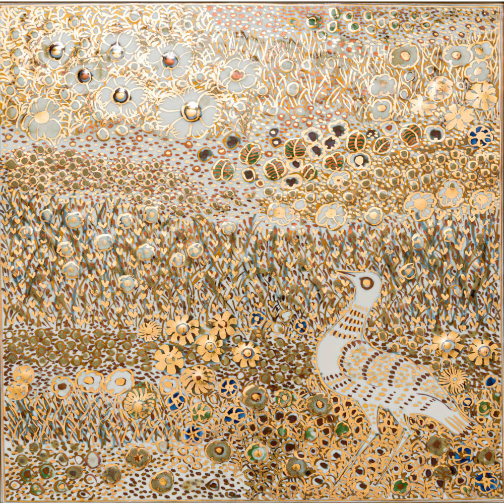 | Bird in Landscape Lustreware Tile | |