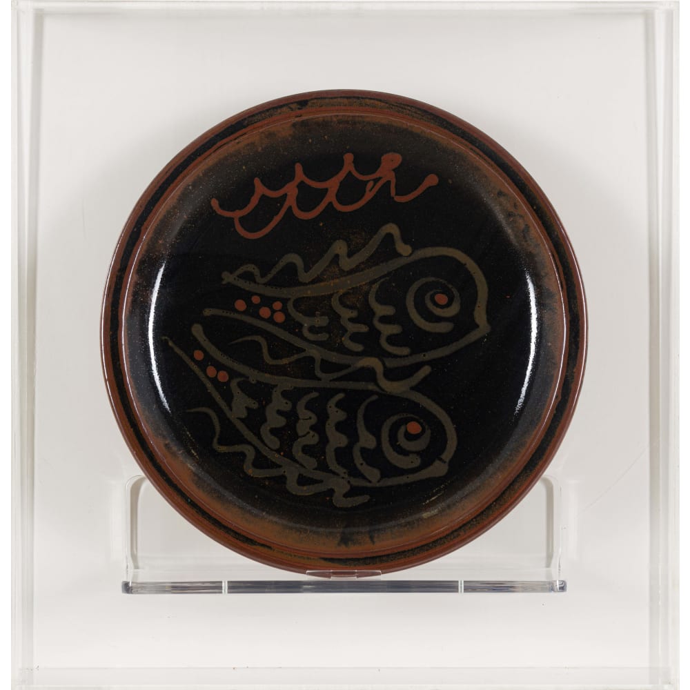 Stoneware with granite glaze and iron decoration