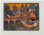 Darmstadt, Ansicht von Regensburg mit Papierschiffen auf der Donau