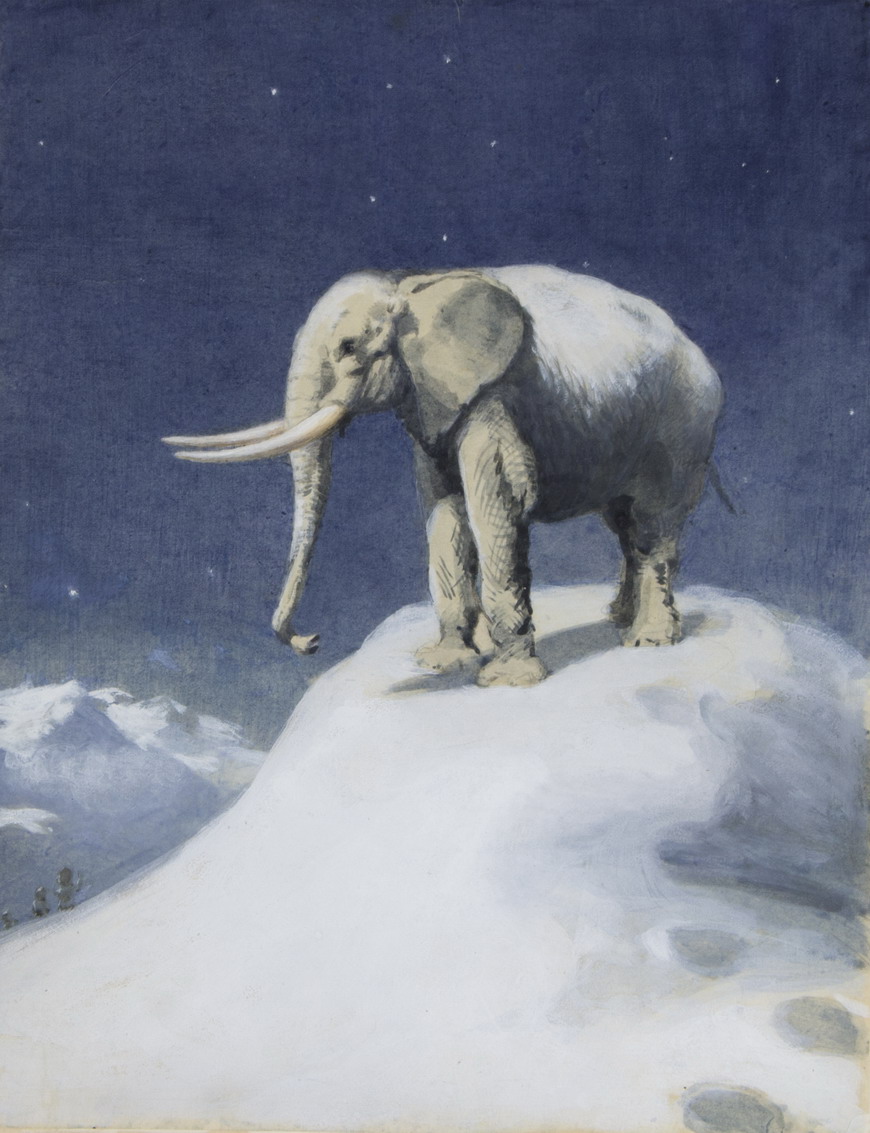 An Elephant on a Snowy Mountain/illustration from a children's poem