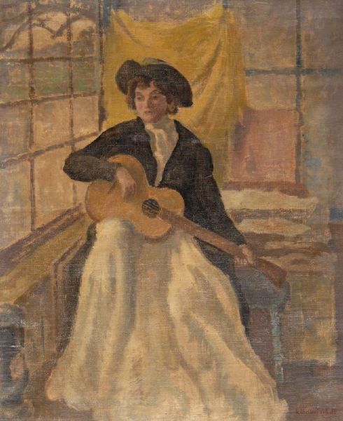 Betty with guitar in an interior