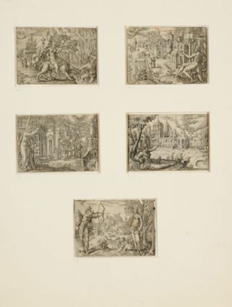 Vijf gravures met oudtestamentische voorstellingen
