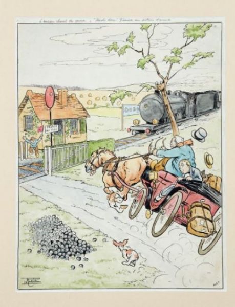 L'Ancien cheval de course "Hardi donc! J'arrive au poteau d'arrivée"