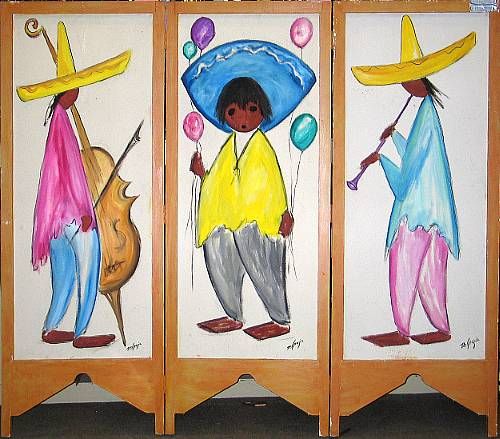 Oil on three panel screen