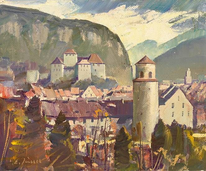Blick auf die Altstadt von Feldkirch mit Schattenburg und Katzenturm