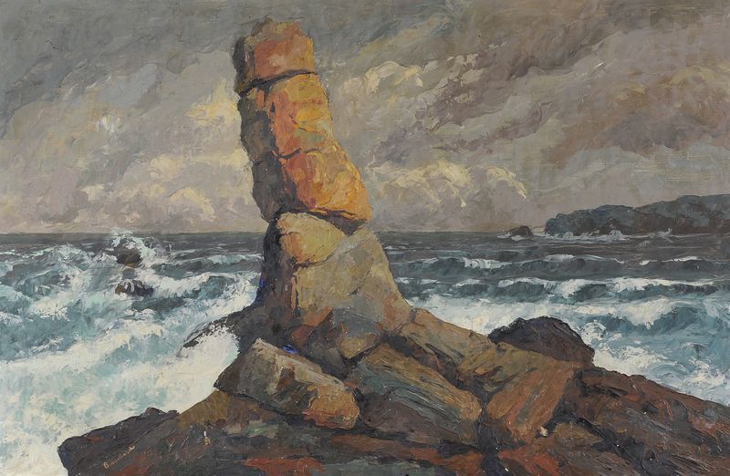 Le menhir, pointe du Raz par temps d'orage