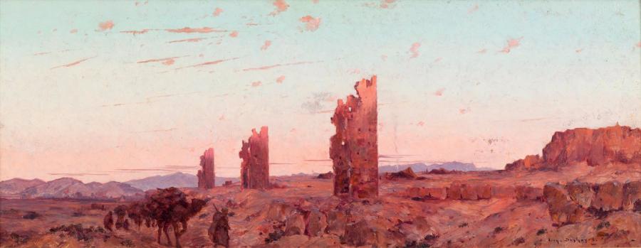 Caravane au soleil couchant sur les ruines d’El Mansoura (Tlemcen)