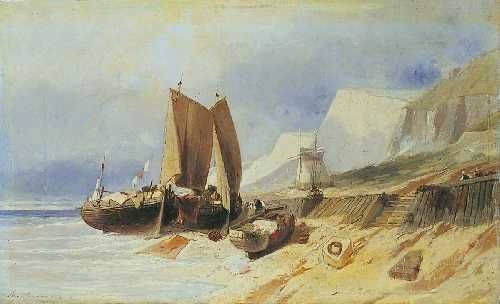KÜSTENLANDSCHAFT MIT FISCHERBOOTEN