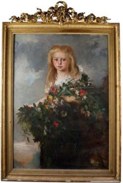 PORTRAIT DE JEUNE FILLE AU BOUQUET DE FLEURS DES CHAMPS