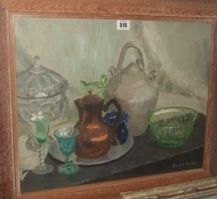Still life of pottery and glass