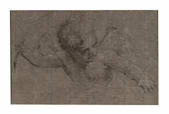 A putto holding a palm frond