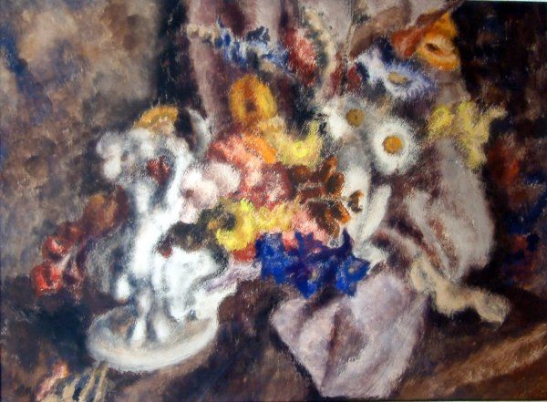 Still life of flowers and cherubs