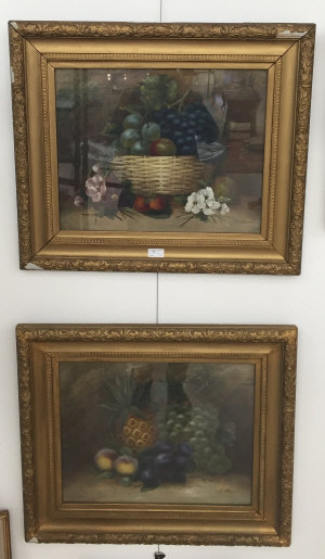 A pair of oils on board, still life studies of fruit