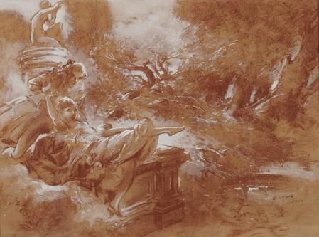 | Sepia pastel and gouache on paper laid down to a second sheet | |