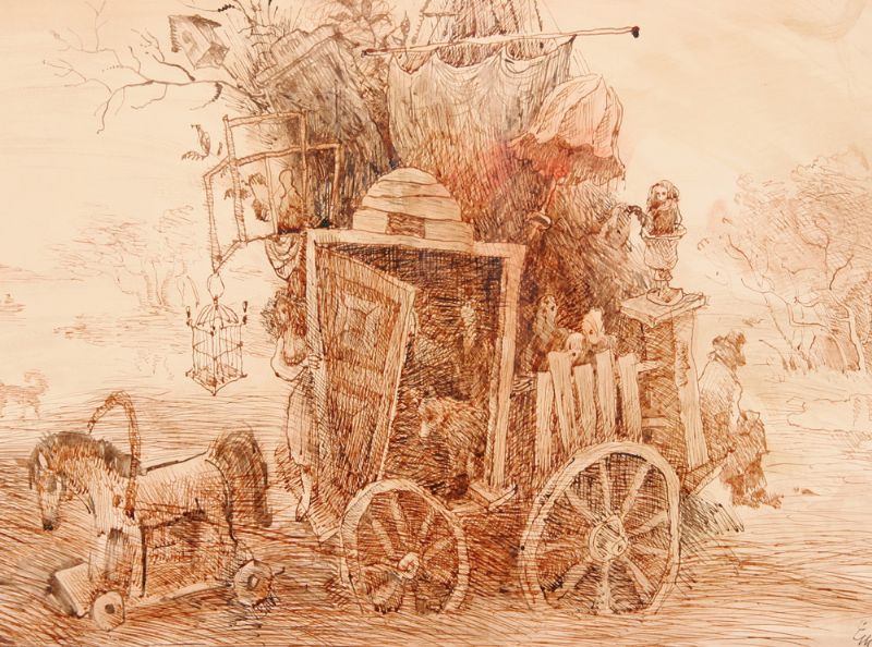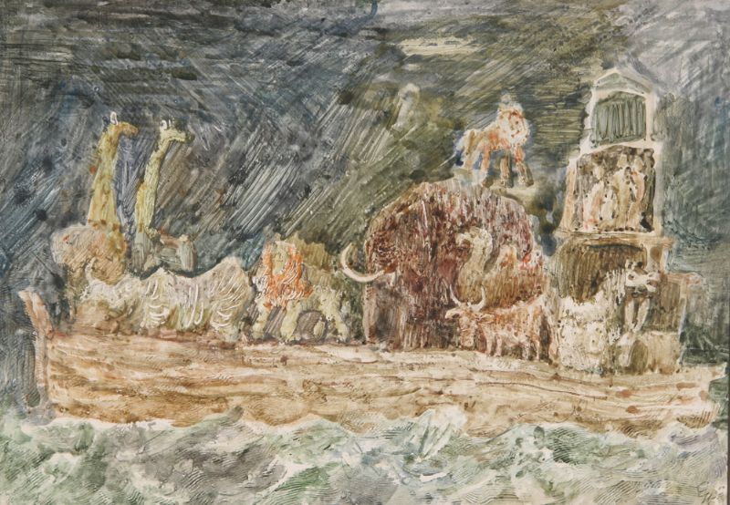 Gouache and mixed media on board, 6 items