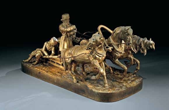 RUSSISCHE SCHLITTEN-TROIKA BRONZEGRUPPE