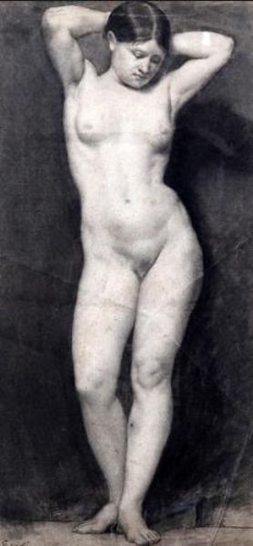 Life drawing of a standing female nude