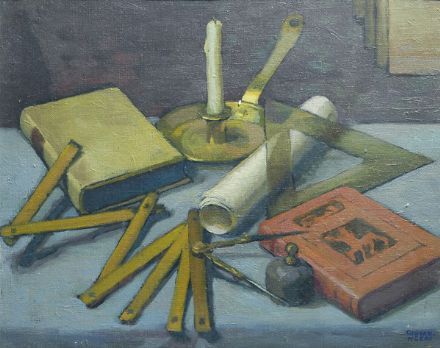 Natura morta con libri e metro