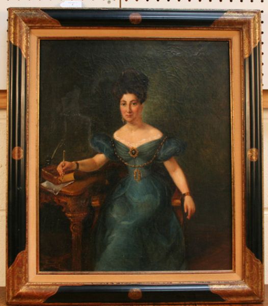 Three-quarter Length Portrait of a Lady seated in a Chair beside a Table and Book