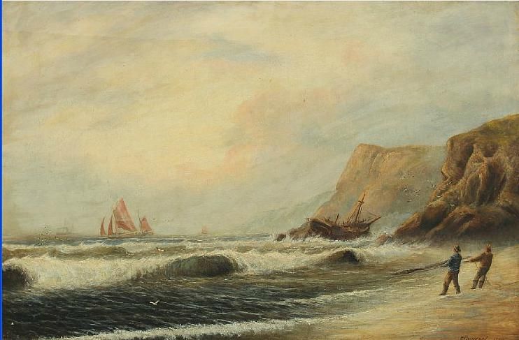 Coastal scenery with ships and a shipwrecks