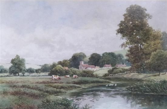 cattle in landscape with village beyond