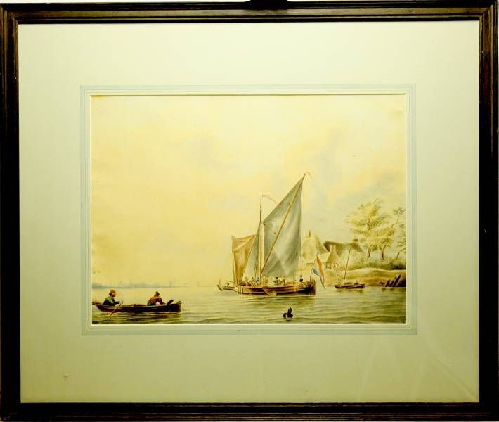 Riviergezicht met zeilboten