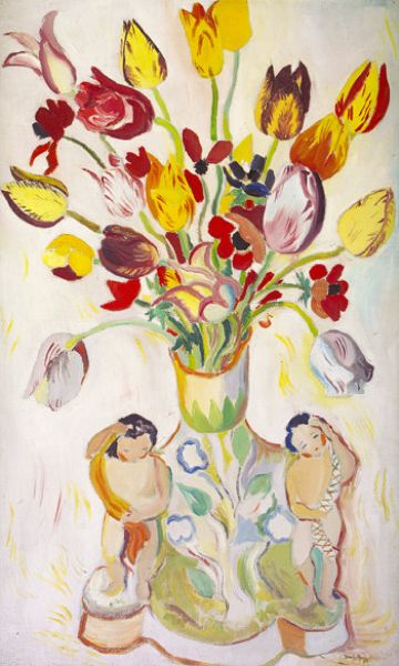 Cherub Vase with Tulips