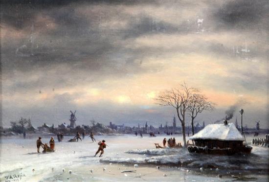 Winter landscape with skaters