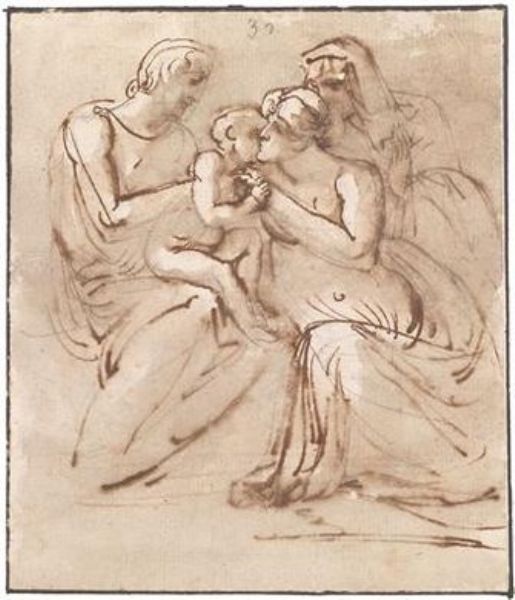 | Pen and brown ink, over pencil, brown wash, on laid paper | |