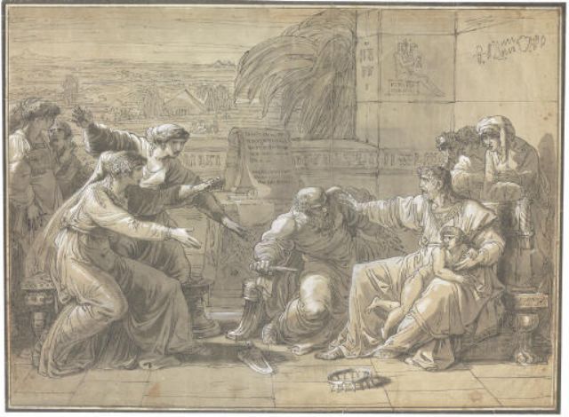 | Chalk black chalk, pen and brown ink, brown wash, heightened with white | |