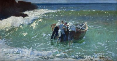 PEJZAŻ NADMORSKI Z RYBAKAMI