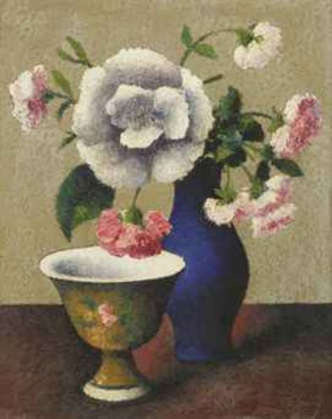 Fleurs dans un vase bleu