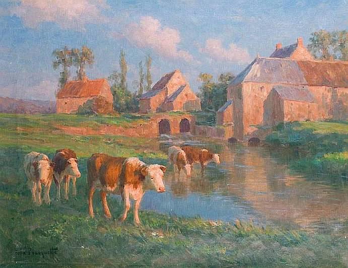 VACHES EN BORD DE RIVIÈRE PRÈS DU MOULIN