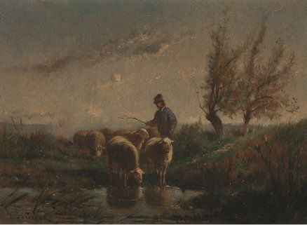 Moutons au bord de la mare