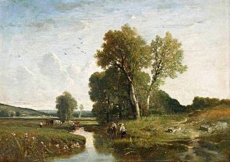 PÊCHEUR ET TROUPEAU À LA RIVIERE