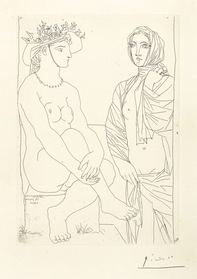 | FEMME ASSISE AU CHAPEAU ET FEMME DEBOUT DRAPÉE (BLOCH 210; BAER 408) | |