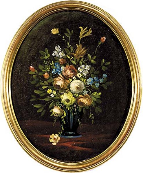 PAIR OF WORKS: OVAL FLORAL STILL LIFES