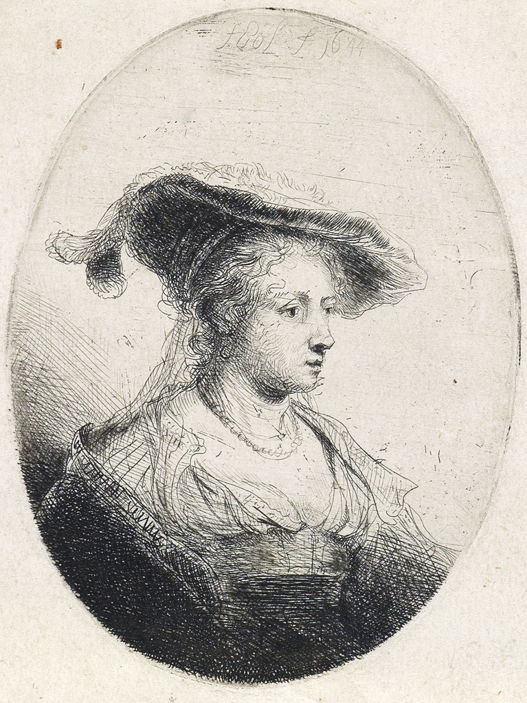 | Bust of a Young Lady with a Plumed Cap (Saskia?). | |