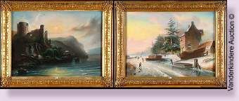 | Paysage hivernal aux patineurs et "Ruines au bord du lac en Ecosse" | |