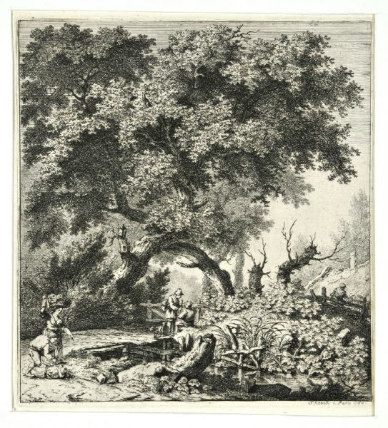 2 Bäume, welche sich über einer hölzernen Brücke kreuzen