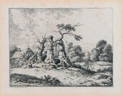 Landscape with a well in front of a cottage