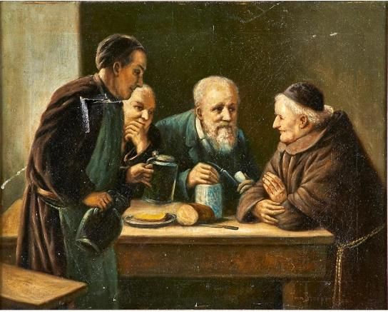 table side conversation among four men