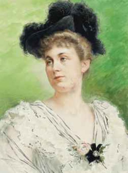 | Portrait of a lady, bust-length, wearing a black hat | |